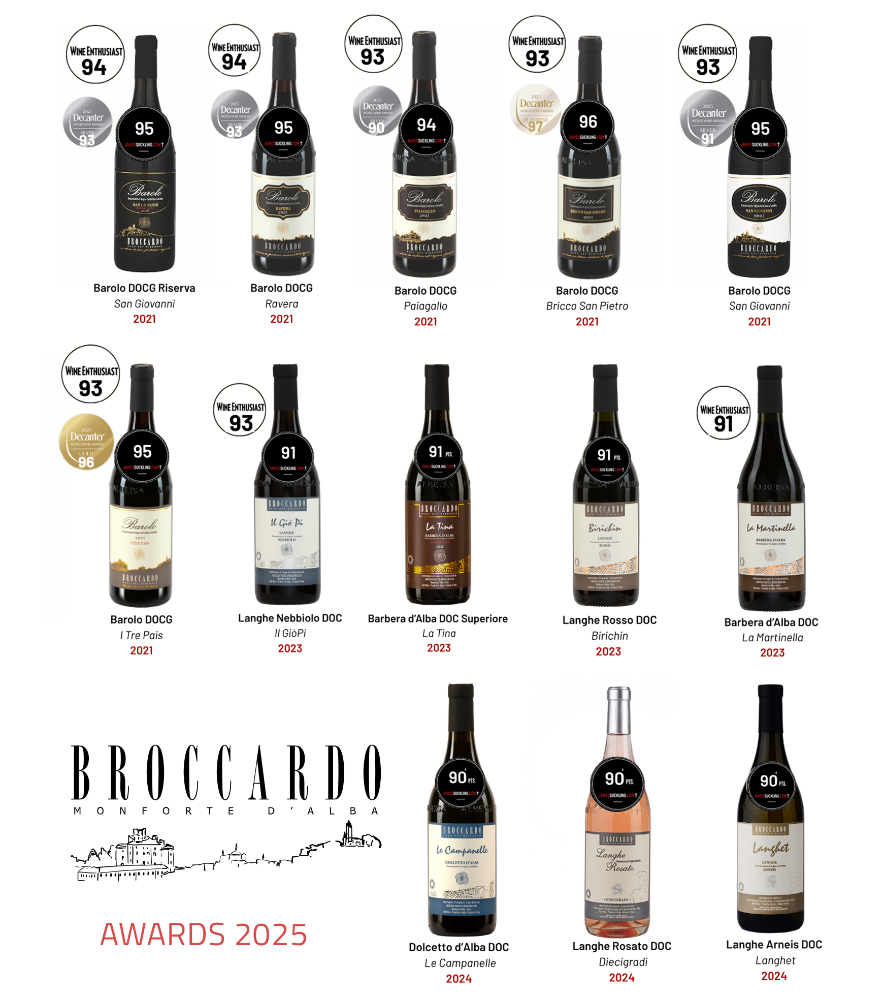 Il Re dei vini piemontesi. Broccardo propone una selezione di Barolo dai più rinomati cru delle Langhe.